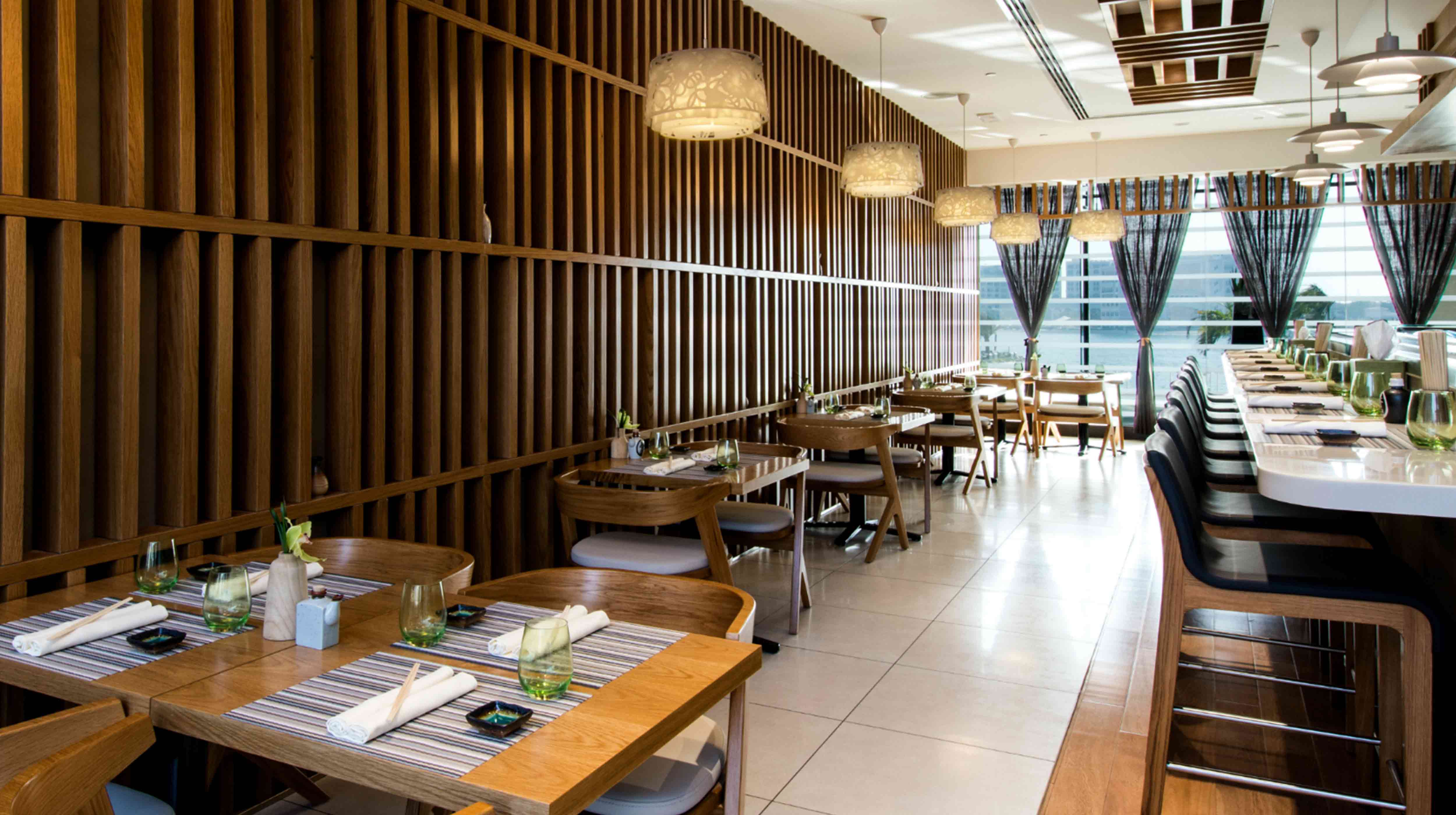 Cafe Sushi at Hotel Fairmont Bab Al Bahr Abu Dhabi offers guests the best of both worlds – the classic simplicity of Japanese cuisine set in an ultra-modern dining experience. You can indulge in unlimited sushi served on a conveyor belt,